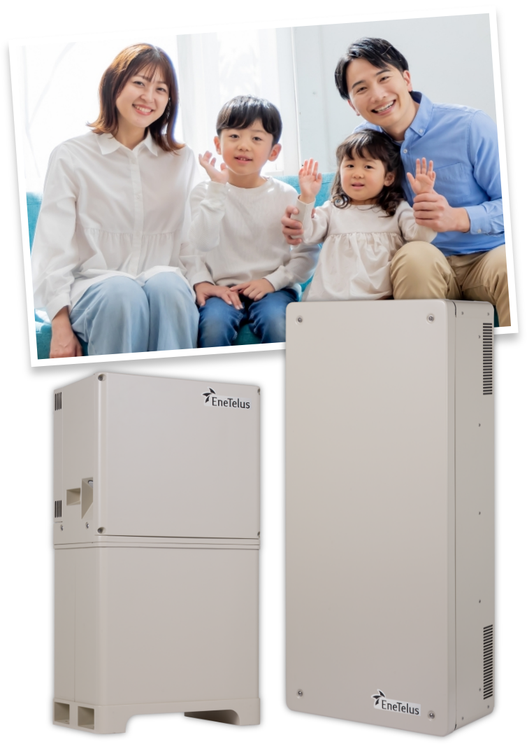 太陽光発電でつくった電気を放電し、エアコンやIH調理器の200V機器などを含め
