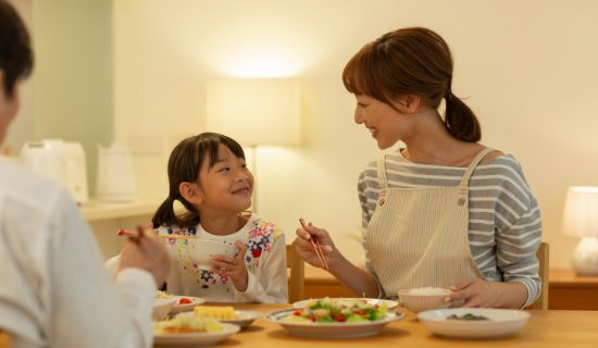 夕食づくりや家族団らんの時間帯は、日中に蓄電池に貯めた電気を優先して使用。電力会社から買う電気を抑えやすくなります。