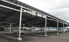 - 当社の環境経営の一環で、2013年1月に工場屋根に1,500kWのソーラーシステムを設置しました。 その後、第二期工事を計画するにあたり、駐車場をつぶすことなく車の上の空間を太陽光発電に利用する事を考えつきました。